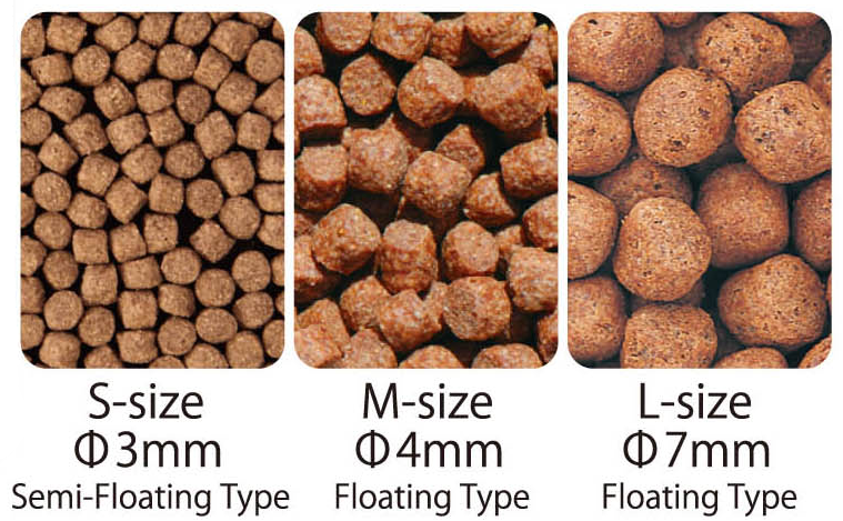 All ingredients in this food are selected carefully with dietetic studies and JPD technology. This food is formulated with high quality animal and plant protein which make a good digestibility for koi. It should be noted that this food is high protein (45%) but also low ash (8.5%). The ash is digested slowly. This is because high protein fish meal is used.