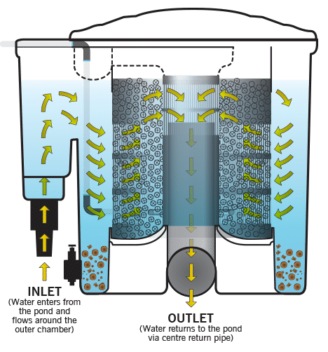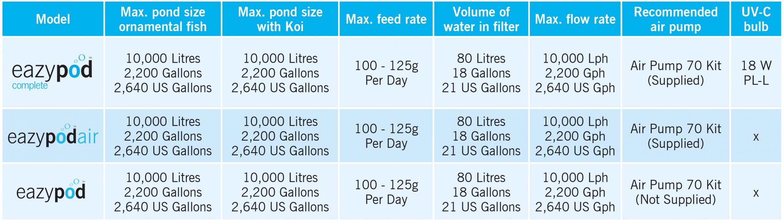 Nexus Eazy Pod is a biological and mechanical filter from your pond, it features a simple yet innovative design. It uses a perforated metal screen to drag larger solid particles from your pond water, immediately increasing the clarity of the water itself. The central chamber of the Eazy Pod contains K1 Biological media, a perfect home for large cultures of beneficial pond bacteria which helps to break down the toxins and bio-waste created by the life in your pond.You can create a more complete system for your pond by opting for the Eazy Pod Air, which includes the Evolution Aqua Airtech 70 Airpump, helping to aerate the water in your pond, providing a more oxygen-rich environment for your fish and helping the bacteria in the filter do its’ job. Nexus Eazy Pod is the complete mechanical and biological filter system for garden ponds up to 20,000 litres or koi ponds up to 10,000 litres.The Eazy Pod is very easy to install and maintain and it produces incredibly clear water when installed with a UVC. The filter has an easy cleaning cycle with no need to get your hands wet/dirty.